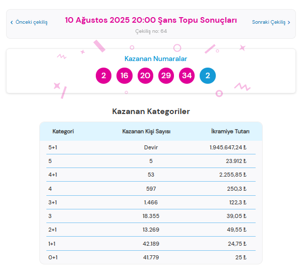 Etiketler: 10 ağustos şans topu sonuçları, şans topu sorgulama, şans topu sonuçları, 10 ağustos 2025 şans topu, şans topu sonuçları belli oldu mu