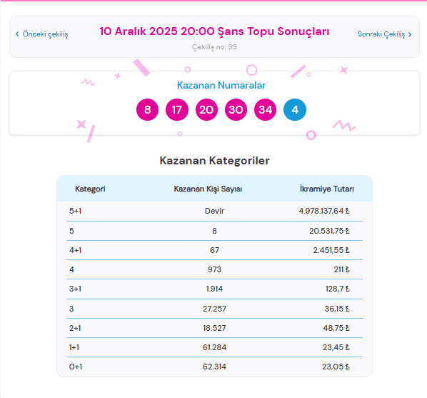 Etiketler: 10 aralık şans topu sonuçları, şans topu sorgulama, şans topu sonuçları, 10 aralık 2025 şans topu, şans topu sonuçları belli oldu mu