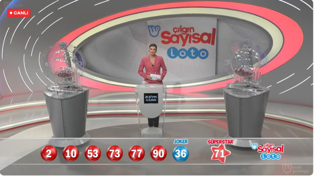 15 Ekim 2025 tarihli Çılgın Sayısal Loto çekilişi, Milli Piyango Online ve Milli Piyango TV Youtube kanalından canlı yayınlandı. Haftanın birinci çekilişini Sisal Şans noter huzurunda gerçekleştirildi. Saat 21.30’da başlayan çekilişte kazanan numaralar belirlendi.