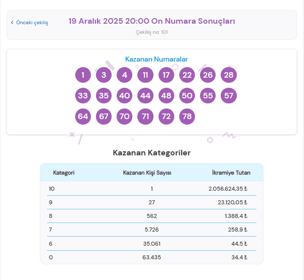 19 ARALIK 2025 ON NUMARA SONUÇLARI