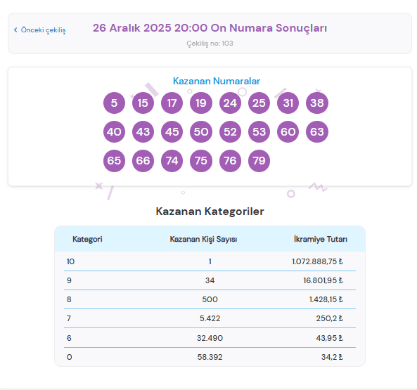 26 ARALIK 2025 ON NUMARA SONUÇLARI