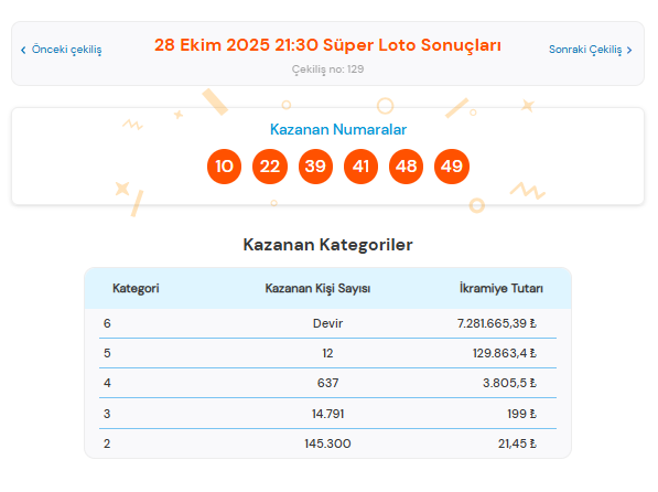 Etiketler: 28 ekim süper loto sonuçları, süper loto sorgulama, süper loto sonuçları, 28 ekim 2025 süper loto, süper loto sonuçları belli oldu mu
