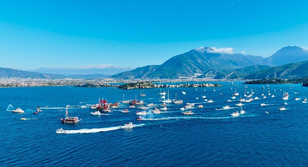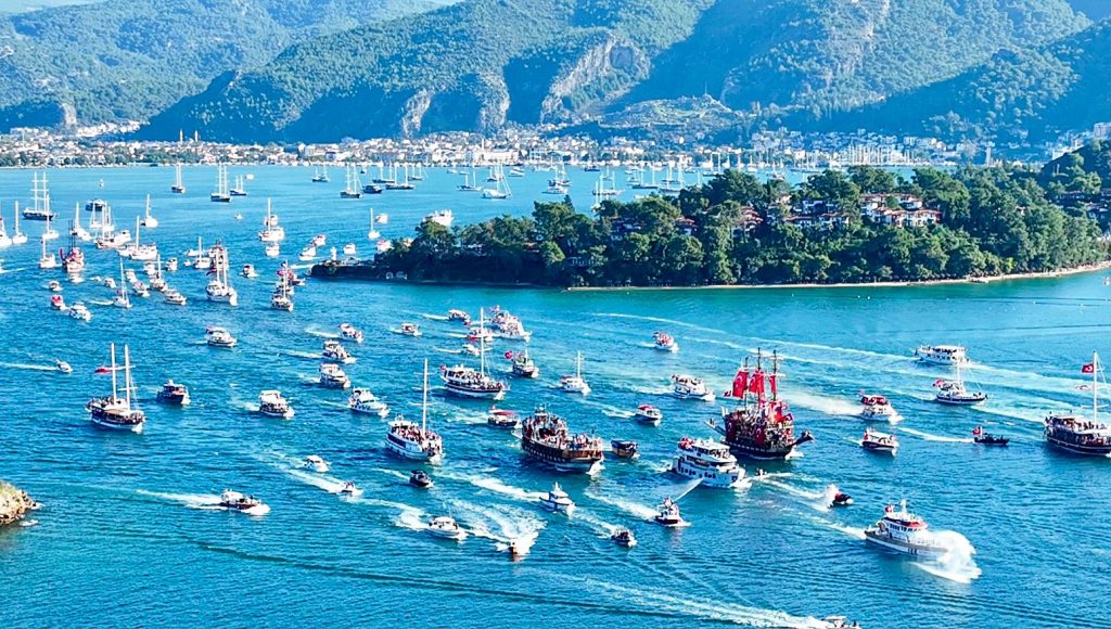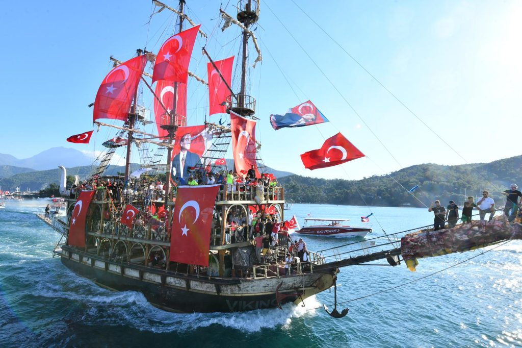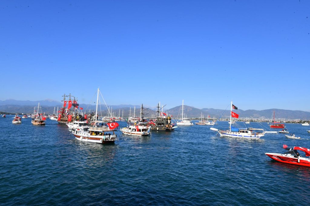 Kutlamalar saat 10.30’da Fethiye Şehir Stadyumu’ndaki törenle başladı. Sonrasında Fethiye Limanı’nda saat 15.30’da Deniz Alayı düzenlendi.