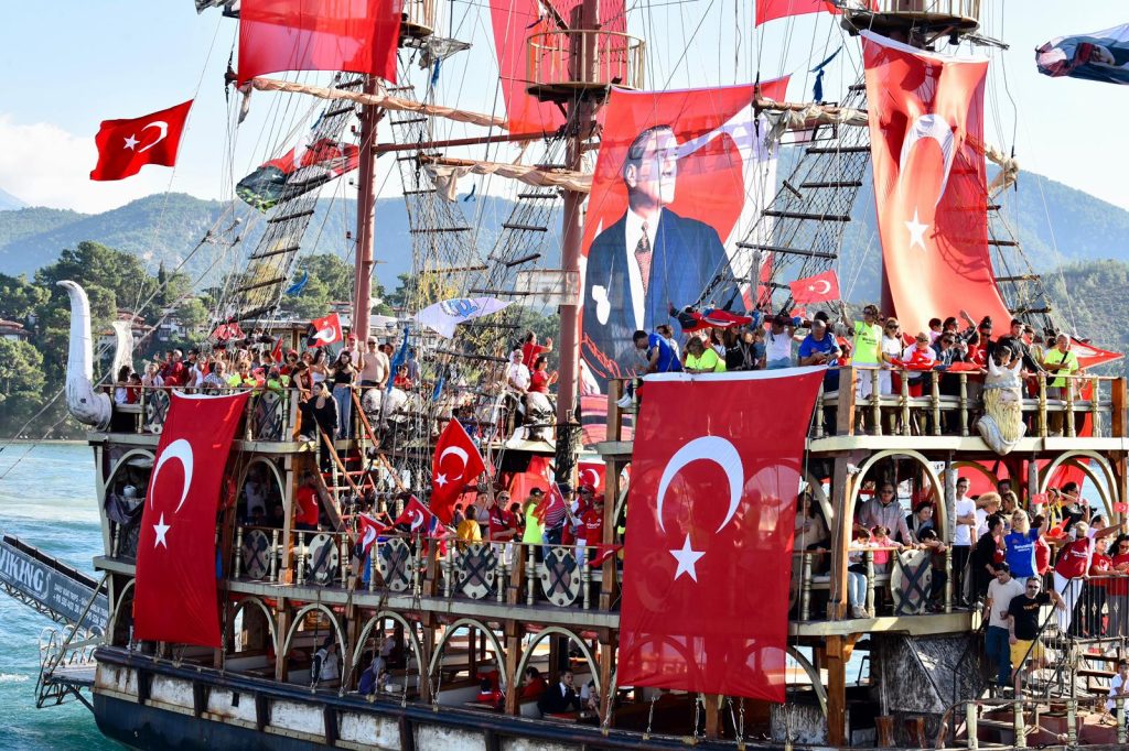 Deniz Alayı’na Fethiye Belediye Başkanı Alim Karaca ve birçok protokol üyesi katıldı. Deniz Alayı’nın ardından 17.00’de Çiftlik Mahallesi’nden Cumhuriyet Konvoyu yola çıktı.