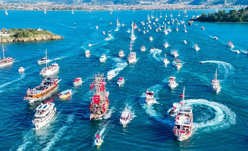 Muğla’nın Fethiye ilçesindeki 29 Ekim Cumhuriyet Bayramı etkinlikleri kapsamında Fethiye Limanı’nda Deniz Alayı düzenlendi.