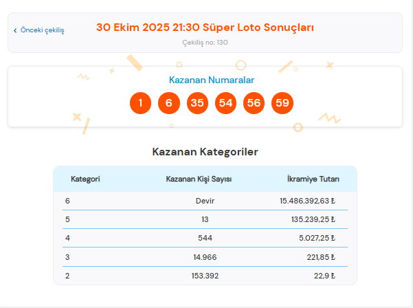 Etiketler: 30 ekim süper loto sonuçları, süper loto sorgulama, süper loto sonuçları, 30 ekim 2025 süper loto, süper loto sonuçları belli oldu mu