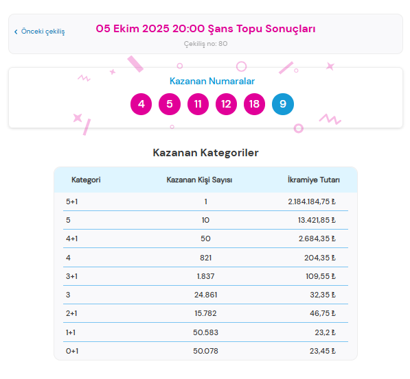 Etiketler: 5 ekim şans topu sonuçları, şans topu sorgulama, şans topu sonuçları, 5 ekim 2025 şans topu, şans topu sonuçları belli oldu mu