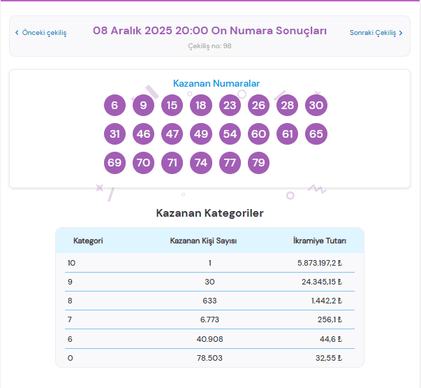 8 ARALIK 2025 ON NUMARA SONUÇLARI