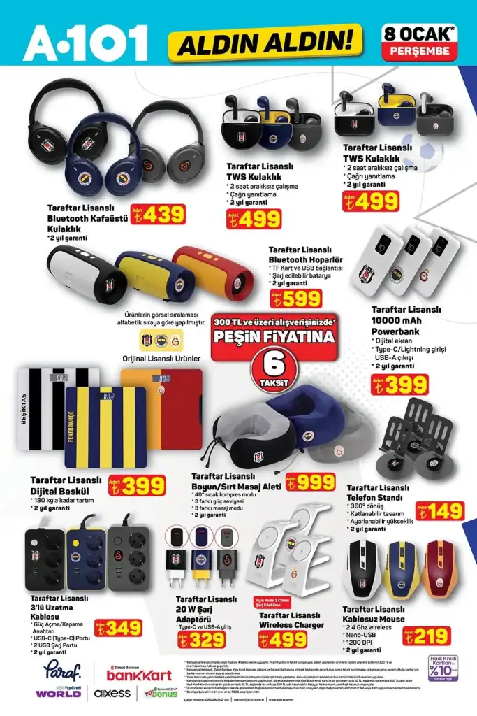 Lisanslı ürünler kapsamında ise taraftar logolu kulaklıklar, hoparlörler, baskül, uzatma kabloları, şarj adaptörleri ve boyun masaj aletleri gibi ürünler 149 TL ile 999 TL arasında değişen fiyatlarla alıcı bekliyor.