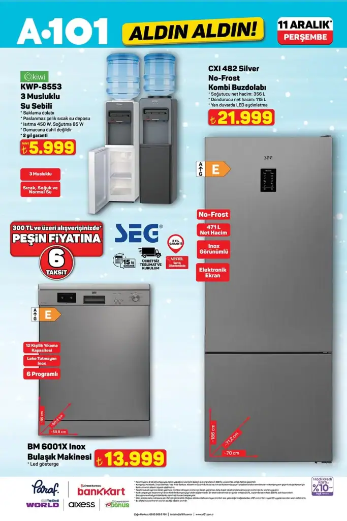A101, 300 TL ve üzeri alışverişlerde peşin fiyatına taksit imkanı da sunuyor.