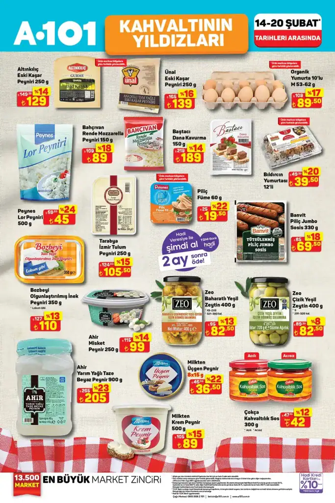 Kahvaltılık ve süt ürünleri kategorisinde Birşah Süt 1 L 41 TL, Birşah Yarım Yağlı Süt 1 L 32,50 TL, Birşah Kaymaklı Tava Yoğurt 1,5 KG 105 TL olarak duyuruldu. Bahçıvan Tam Yağlı Süzme Peynir 500 g 99,50 TL, Ahir Tam Yağlı Taze Beyaz Peynir 1 KG 209 TL fiyatla satışa çıktı. Organik Yumurta 10’lu M boy 89,50 TL olarak katalogda yer aldı.
