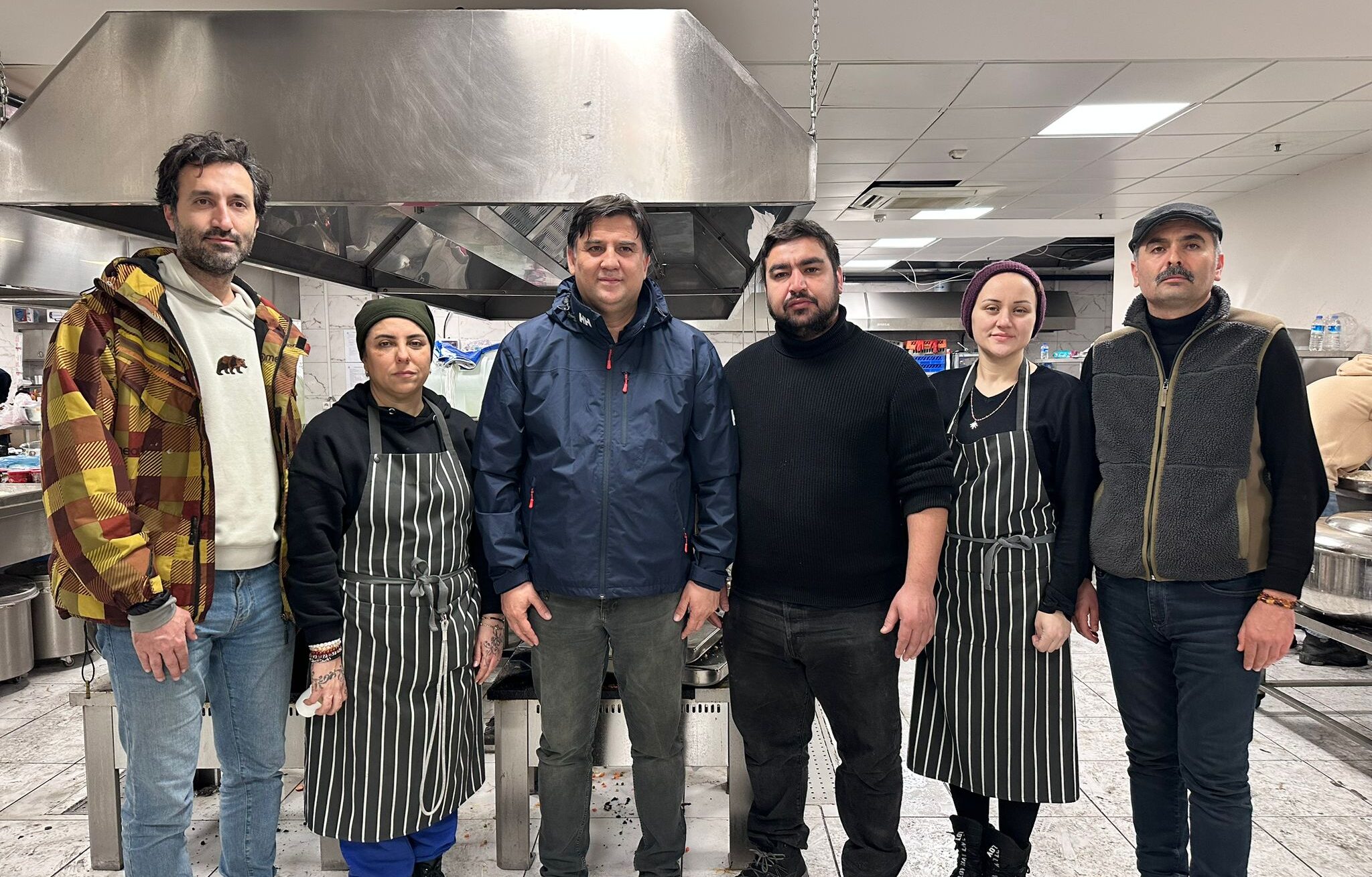 Şefler Ebru Baybara Demir ve Türev Uludağ ile bir araya gelen Fethiye Belediye Başkanı Alim Karaca, “Öncelikle burada çalışan herkese teşekkür ederim. Fethiye’nin hayırsever vatandaşlarının yapmış olduğu yardımları yerinde görüyoruz. Arkadaşlarım bana günde 20 bin ila 30 bin kişi arasında yemek çıktığını söylediler. Burada sıcak yemeğin iki aydan fazla bir süre çıkması gerekiyor” ifadelerini kullandı.