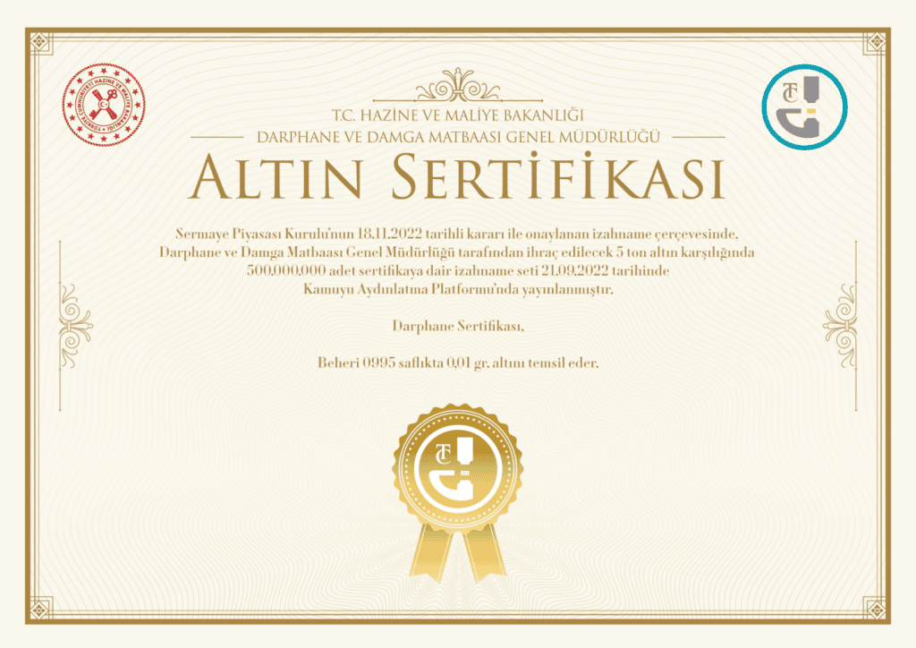 Darphane altın sertifikası, 21 Kasım 2022 tarihinde Borsa İstanbul’da işlem görmeye başladı. Her bir sertifika, 0,995 saflıkta 0,01 gram altını temsil ediyor. Bu kapsamda 100 adet ALTINS1 sertifikası 1 gram altına karşılık geliyor.