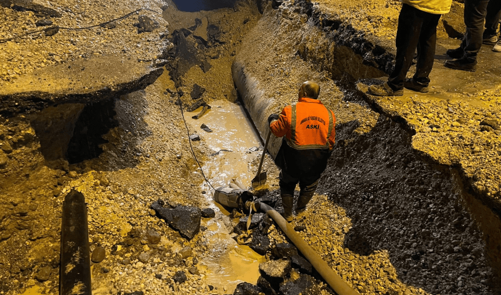 Yenimahalle ilçesi Ergenekon Mahallesi Suadiye Caddesi içerisinde bulunan binlik çelik boruda meydana gelen arıza nedeniyle plansız su kesintisi yapıldı. ASKİ, arızanın giderilmesi için çalışmaların sürdüğünü açıkladı.