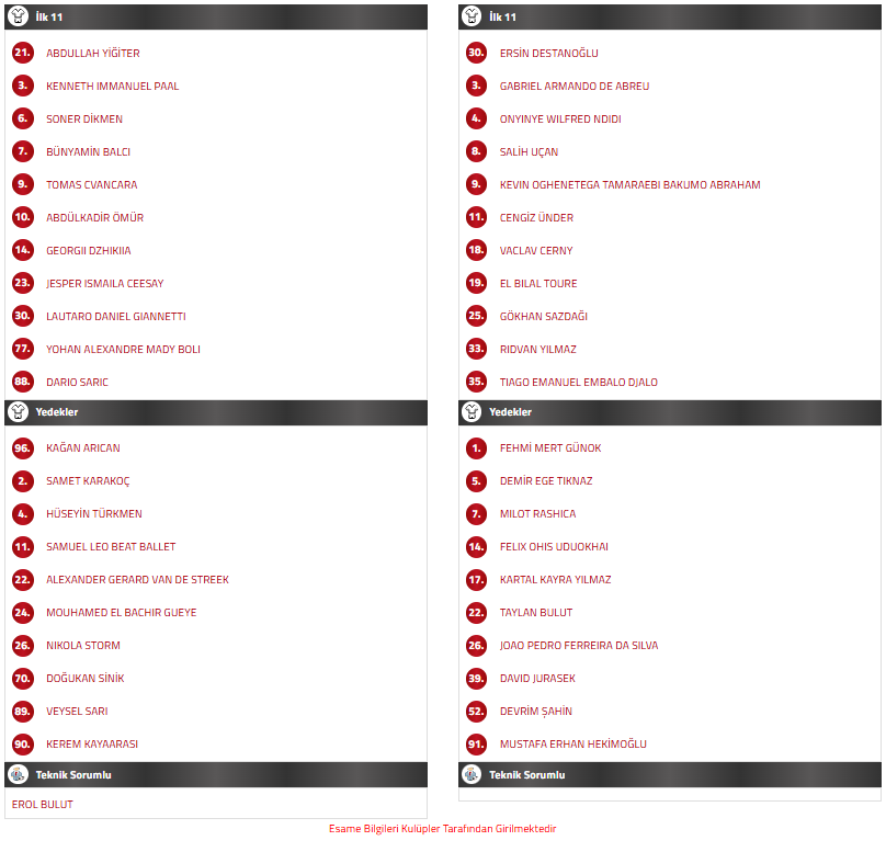 Antalyaspor’da ise Erdoğan Yeşilyurt, Hasan Yakub İlçin, kaleci Julian Cuesta ve sarı kart cezalısı Ramzi Safuri oynayamayacak.