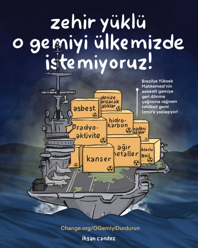 Yaklaşık 600 ile 900 ton arasında asbest farklı zehirli kimyasalları barındırdığı öne sürülen ve Brezilya Donanması tarafından 21 yıl kullanıldıktan sonra hurdaya ayrılan Nae Sao Paulo adlı uçak gemisinin, sökümünün yapılması için İzmir’in Aliağa ilçesine getirilmesine izin verilmesine karşı change.org’da imza kampanyası başlatıldı.