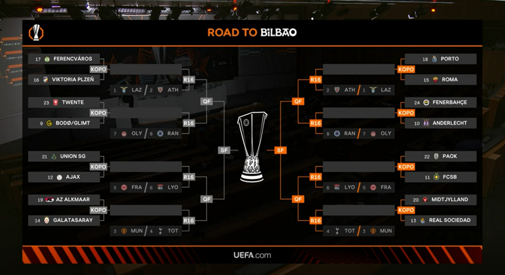 UEFA Avrupa Ligi’nde son 16 play-off turu eşleşmeleri belli oldu. Galatasaray ve Fenerbahçe’nin rakipleri UEFA Genel Merkezi’nde yapılan kura çekimiyle açıklandı.
