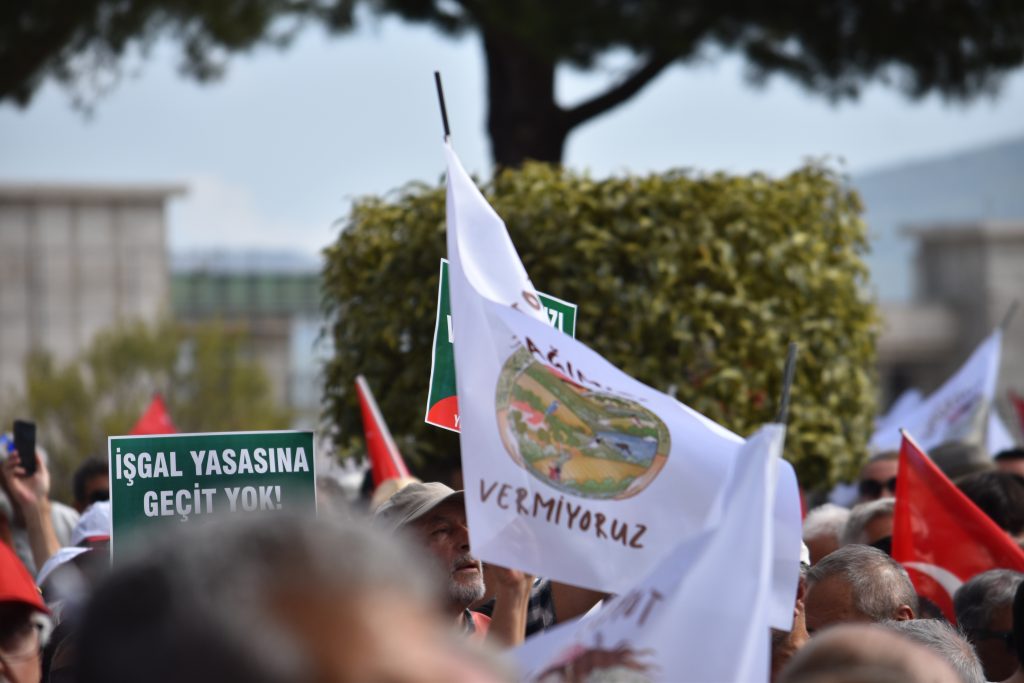 “Akbelen’de sökülmeye başlayan zeytinlerin, Samandağ’da talan edilen mandalina bahçelerinin, Kırşehir, Eskişehir, Tokat, Balıkesir, Uşak, Kütahya’da ve memleketin dört bir yanında yaşam mücadelesi veren halkın çığlığını duyun.
