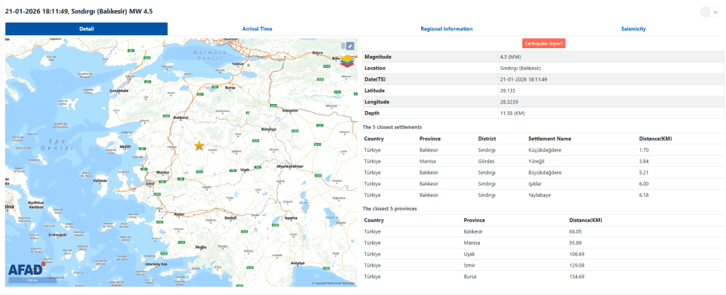 AFAD DEPREM DETAYLARI İÇİN TIKLAYINIZ