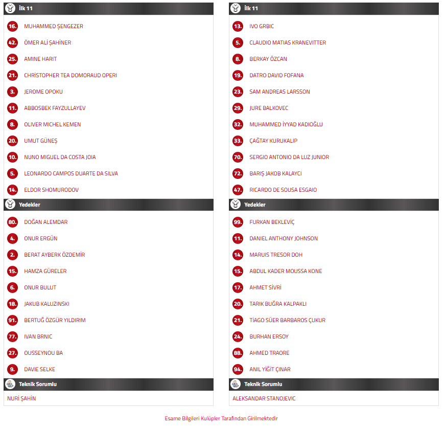 BAŞAKŞEHİR – FATİH KARAGÜMRÜK İLK 11’LER