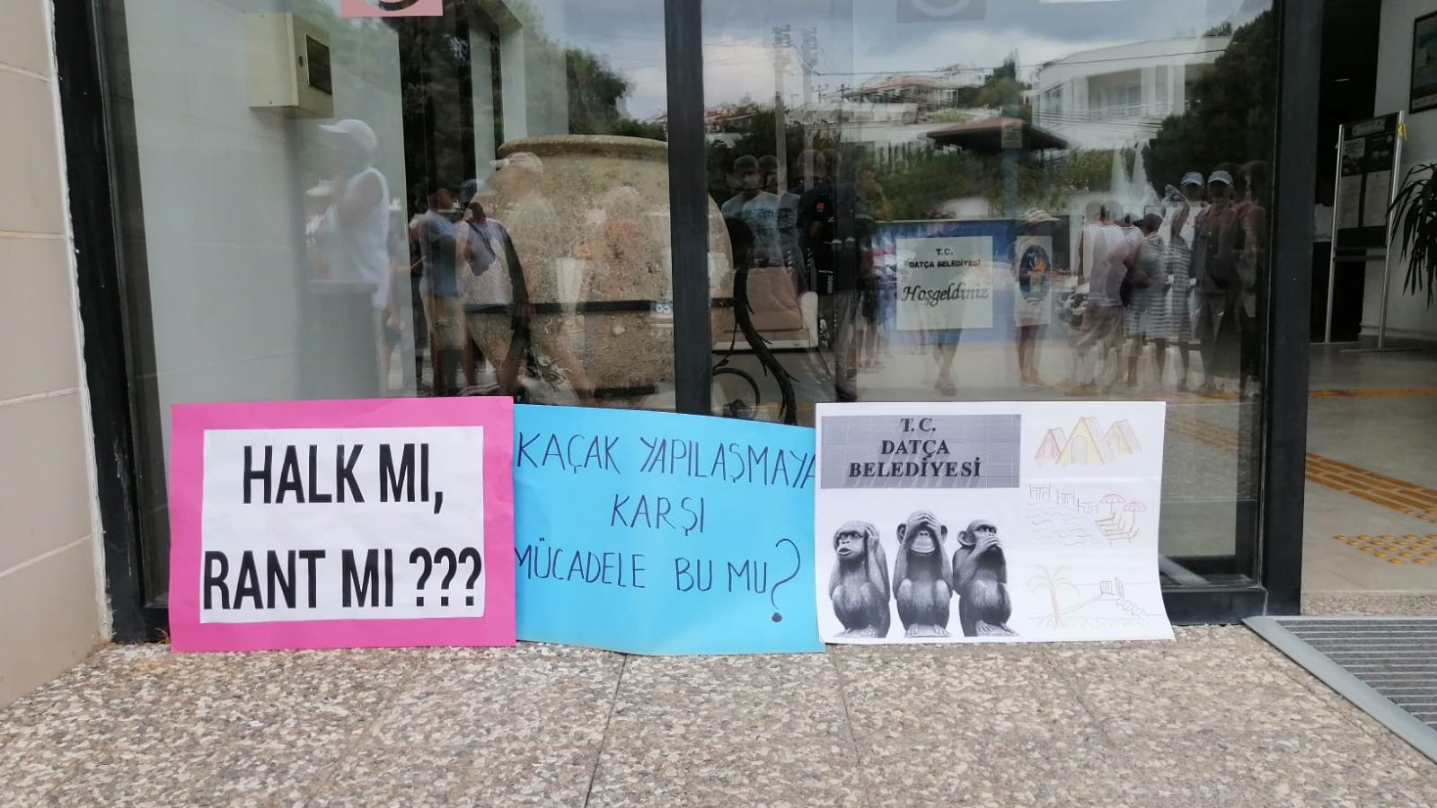 Muğla’nın Datça ilçesinde dün, Muğla Çevre Platformu Datça Meclisi ve Şezlongsuz Datça İnisiyatifi; kaçak yapılaşma, sahillerin işgali ve eğlence mekânlarının yarattığı gürültü kirliliği hakkında Belediye önünde eylem düzenleyip açıklama yaptı.