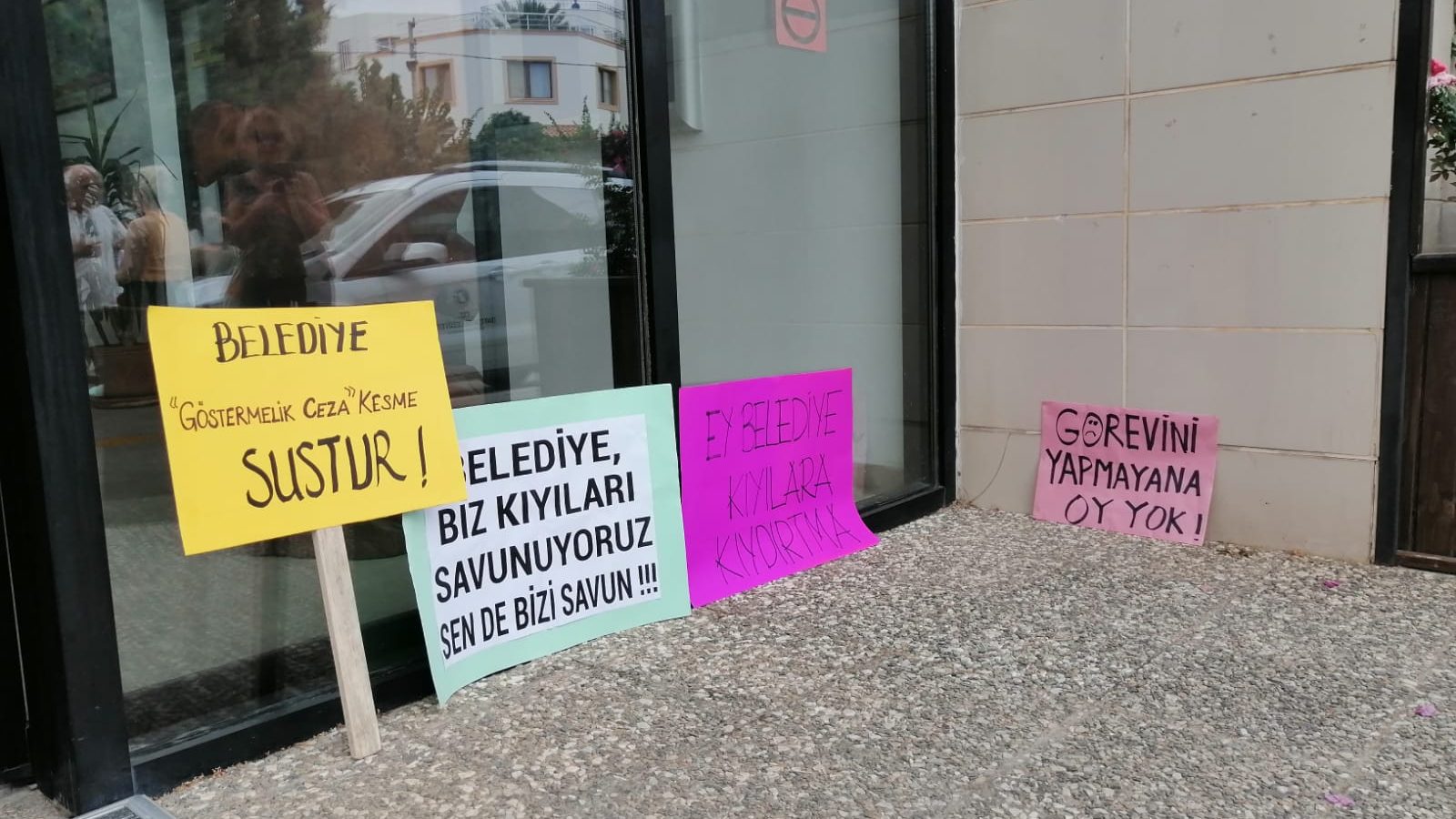 “Belediye bizi duyuyor mu?” diye soran Ömeroğulları, “Peki, arkeolojik sit alanlarının korunmadığı, kaçak yapıların görünmez kılındığı, tespit edilen ve hatta yıkım kararı alınan yapılarda karar infazlarının yapılmadığı, kıyıların her gün daha da yayılan biçimde işgal edildiği ve ranta teslim edildiği bir kentte, belediye nerede? Bizi duyuyor mu? Biz belediyeyi duyuyor, görüyor ve izliyoruz” ifadeler kullanıldı.