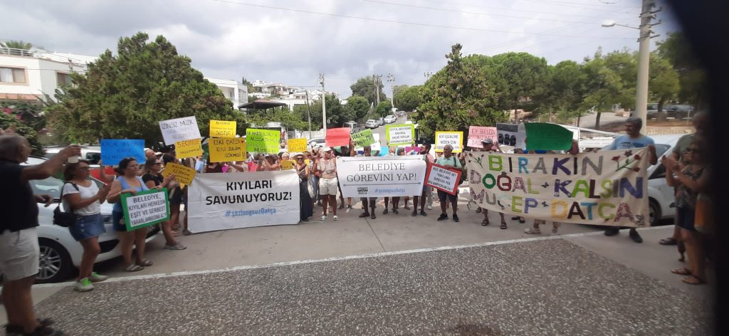 Muğla’nın Datça ilçesinde dün, Muğla Çevre Platformu Datça Meclisi ve Şezlongsuz Datça İnisiyatifi; kaçak yapılaşma, sahillerin işgali ve eğlence mekânlarının yarattığı gürültü kirliliği hakkında Belediye önünde eylem düzenleyip açıklama yaptı.