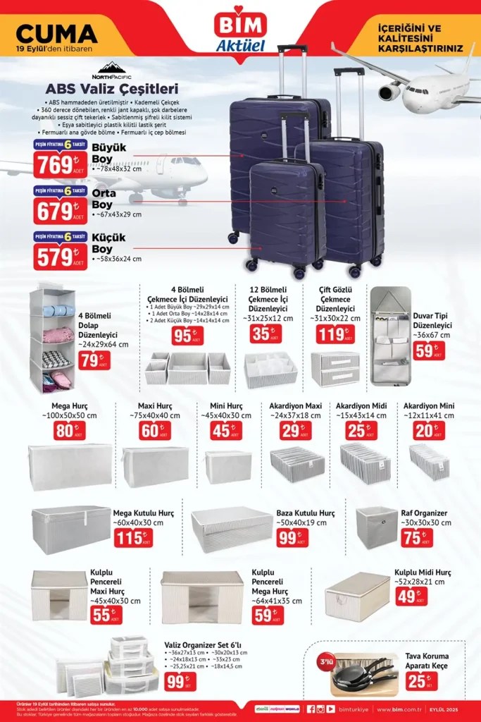 Ev eşyalarında North Pacific ABS valiz çeşitleri büyük boy 769 TL, orta boy 679 TL, küçük boy ise 579 TL fiyatla satılacak. Ayrıca çekmece içi düzenleyiciler, hurç modelleri, baza altı saklama kutuları ve raf düzenleyiciler de katalogda yer alıyor.