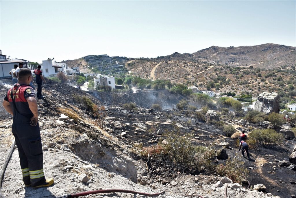 Muğla’nın Bodrum ilçesinde bulunan Bitez Mahallesi Menengeç Caddesi’nde binaların arasındaki çalılıkta, henüz belirlenemeyen nedenle yangın çıktı.