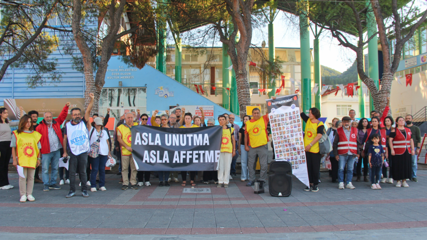 Muğla’da Fethiye Kültür Merkezi önünde, 10 Ekim Ankara Gar Katliamı’nda yaşamını yitirenler için basın açıklaması yapıldı. Açıklamada, "Katliamdan hemen sonra katliamın oylarını nasıl etkilediğini öğrenmek için anket yaptıran siyasal anlayış…