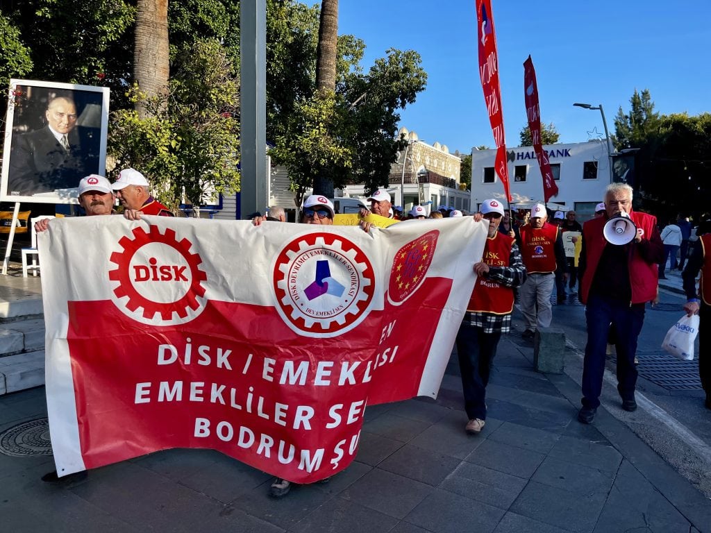 Muğla’nın Bodrum ilçesinde DİSK’e bağlı DEV Emekli-Sen, bugün (19 Aralık) saat 16.00’da DİSK binasından Bodrum Belediye Meydanı’na yürüyüş gerçekleştirdi ve emekli maaşlarına yapılacak zamlara ilişkin basın açıklaması yaptı.