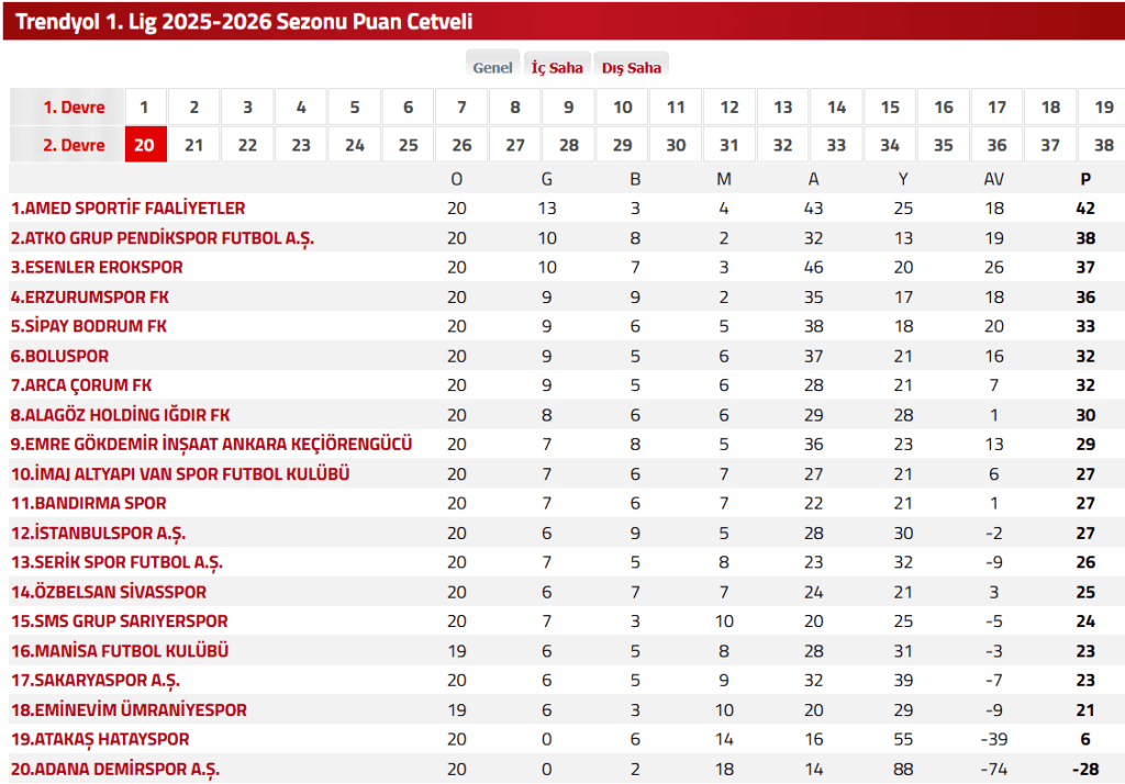 Trendyol 1. Lig’in 20’nci haftasında Pendikspor’a konuk olan Sipay Bodrum FK, karşılaşmadan 0-0 beraberlikle ayrılarak haftayı 33 puanla beşinci sırada tamamladı.
