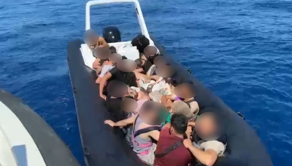 Muğla’nın Bodrum ilçesi açıklarında lastik bot içerisinde 21 düzensiz göçmen ve iki göçmen kaçakçısı şüphelisi yakalandı.