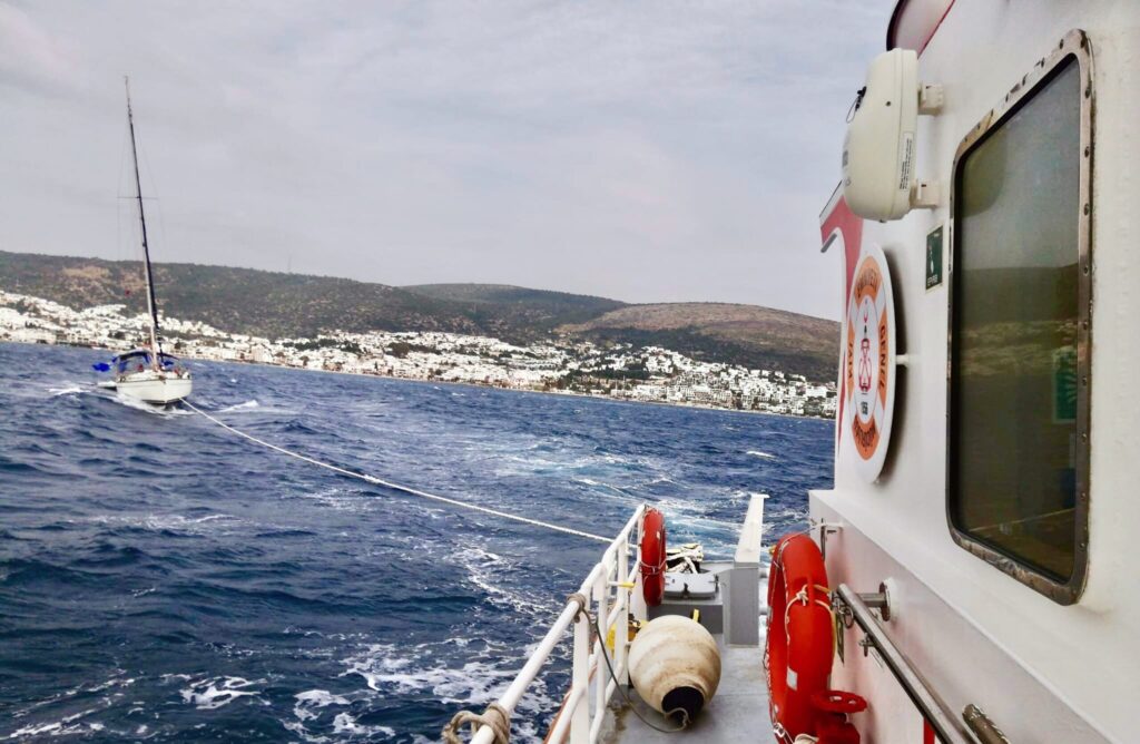 15 metre boyundaki tekneden yapılan çağrı üzerine, tekne KIYEM-6 can kurtarma botu tarafından Bodrum Marina’ya çekildi.