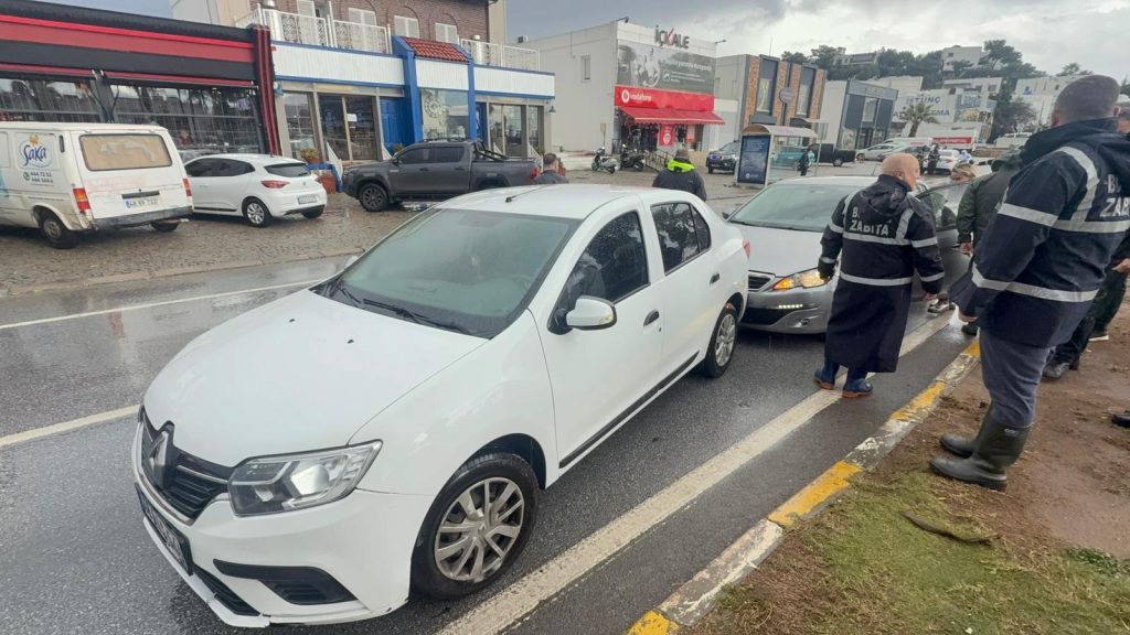 Muğla’nın Bodrum ilçesinde el freni çekilmeyen otomobil, kontrolsüz şekilde hareket ederek yoldaki başka bir araca çarptı.
