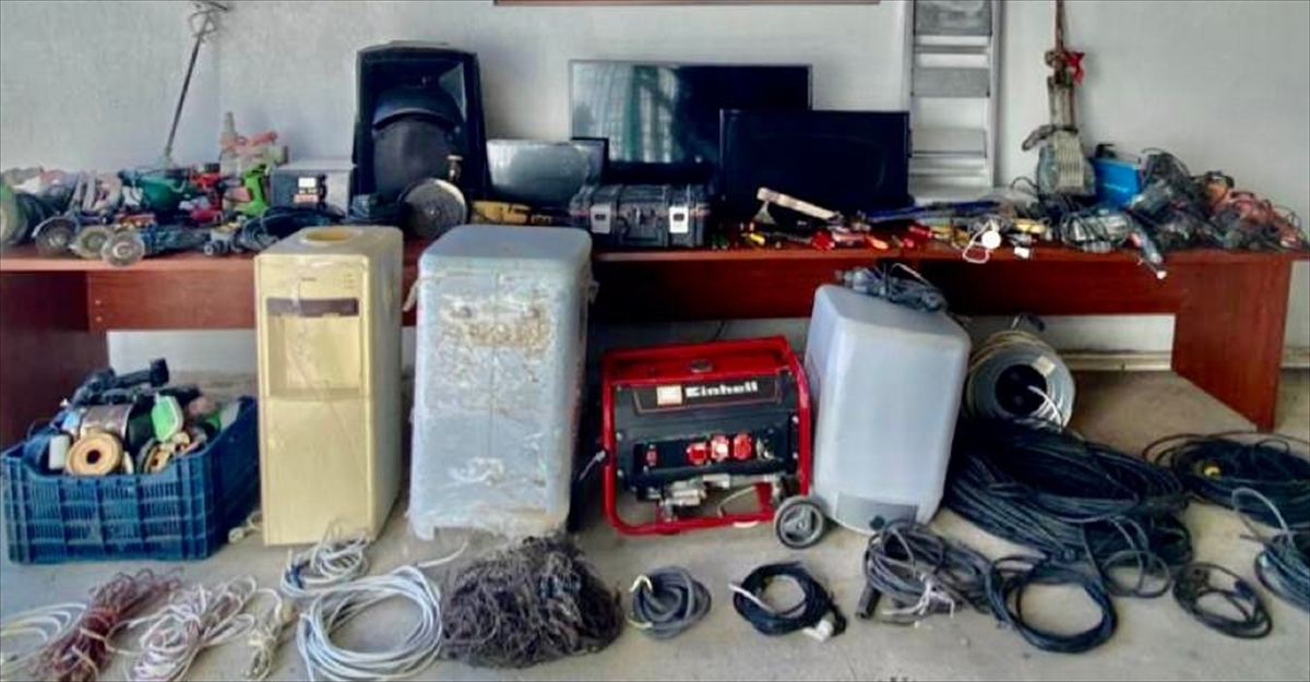 Milas İlçesi Dörttepe Mahallesindeki bir evde yapılan aramada, jeneratör, 2 LCD televizyon, 2 termosifon, 2 kaynak makinası, su sebili, 10 matkap, 500 metre elektrik kablosu, 250 metre uzatma kablosu, 6 spiral makinası, 3 şarjlı matkap, hoparlör 2 demir makası, 50 kilogram yakılmış bakır kablo, 2 yer silme makinası ve kantar ele geçirildiği aktarıldı.