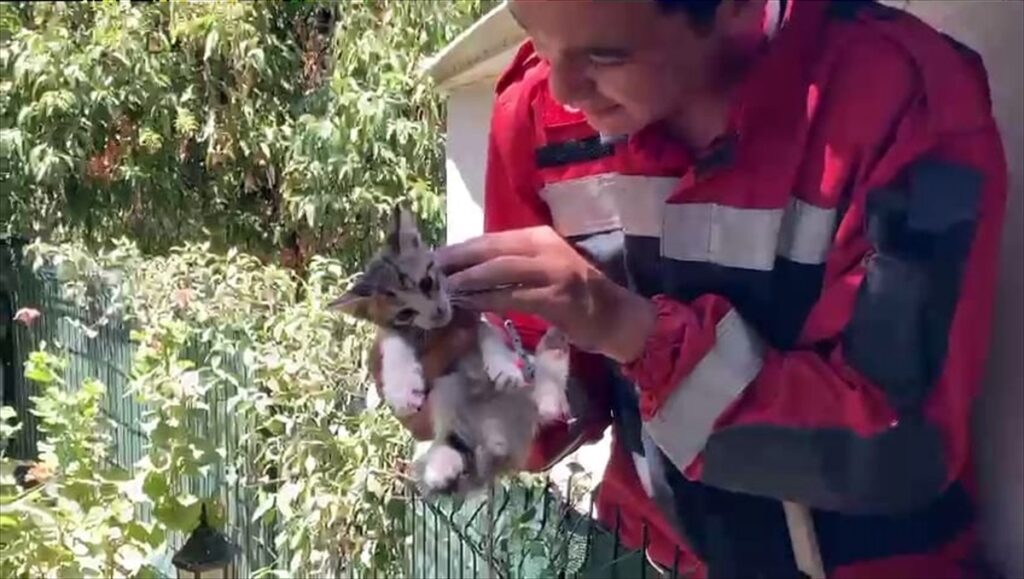 Muğla’nın Bodrum ilçesinde, iki duvarın arasına sıkışan yavru kedi itfaiye ekibi tarafından kurtarıldı.