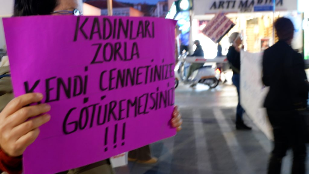 Muğla’nın Bodrum ilçesi Tepecik Camii yanında saat 18:00’da toplanan kadınlar Bodrum Meydanı’na yürüdü.