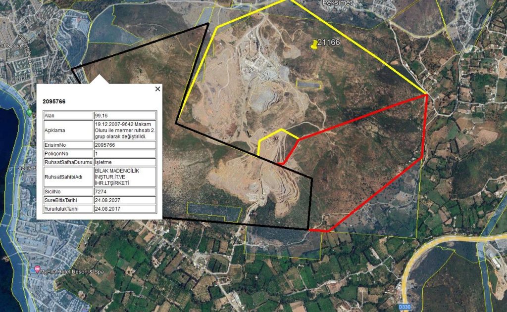 Dilekçeye iliştirilmiş olarak Yapıtaşı Madencilik firmasının ÇED sürecinin sonlandırılması belgesi de yer alıyor. Bu karara istinaden eski maden ocaklarına ruhsat yenilemesi yapılırken yeni ocak kurulmasının uygun bulunmamasının yarattığı çelişkiye de atıf yapılıyor.