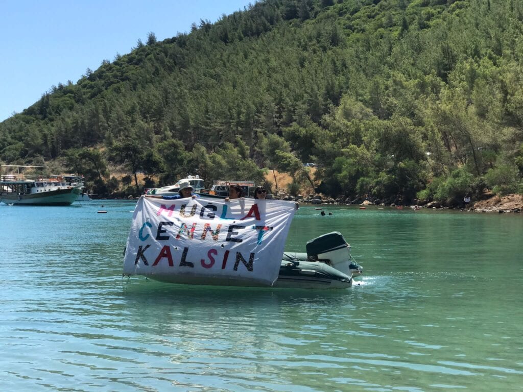 “’Doğadan- doğrudan yanayız’ demek için ses veriyoruz. Kente karşı işlenen suçları teşhir etmek için Bodrum halkıyla birlikte yürüyoruz. Sokağın sesini, doğanın sesi ile buluşturacağız ve diyoruz ki: Daha ne kadar beton! Daha geç olmadan ayağa kalk Bodrum! Ya şimdi ya hiç bir zaman, kurtuluş yok tek başına, ya hep beraber ya hiç birimiz!”