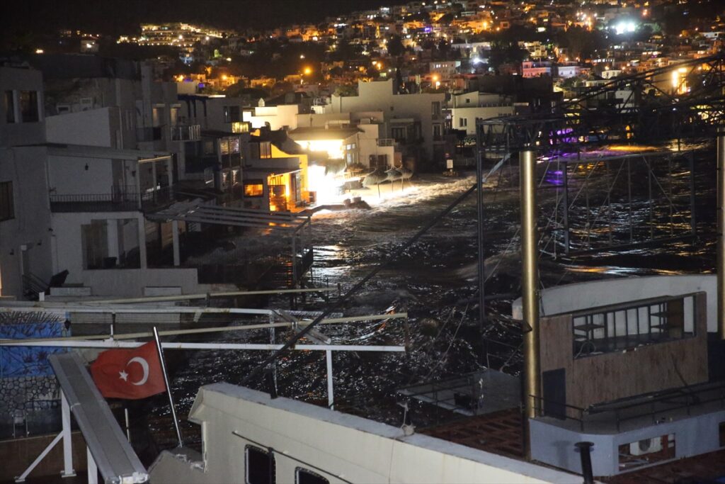 Muğla Bodrum’da kuvvetli rüzgarla sürüklenen katamaranda ve kıyıdaki bazı işletmelerde hasar meydana geldi.