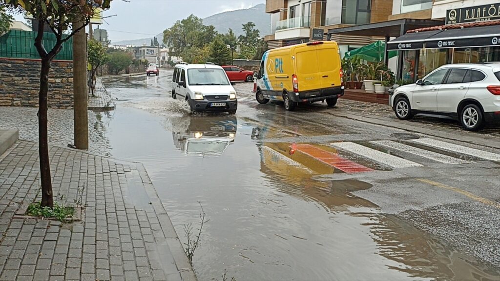 Muğla’nın Bodrum ilçesinde, sabah saatlerinde başlayan ve zaman zaman etkisini artıran sağanak nedeniyle Gümbet, Bitez, Konacık mahalleleri ile Kıbrıs Şehitleri Caddesi’nde yollarda su birikintileri oluştu.