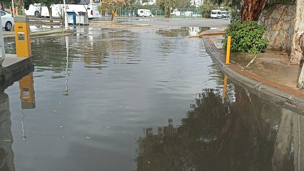 Muğla’nın Bodrum ilçesinde etkili olan sağanak yağış sebebiyle bazı bölgelerde su birikintileri oluştu.