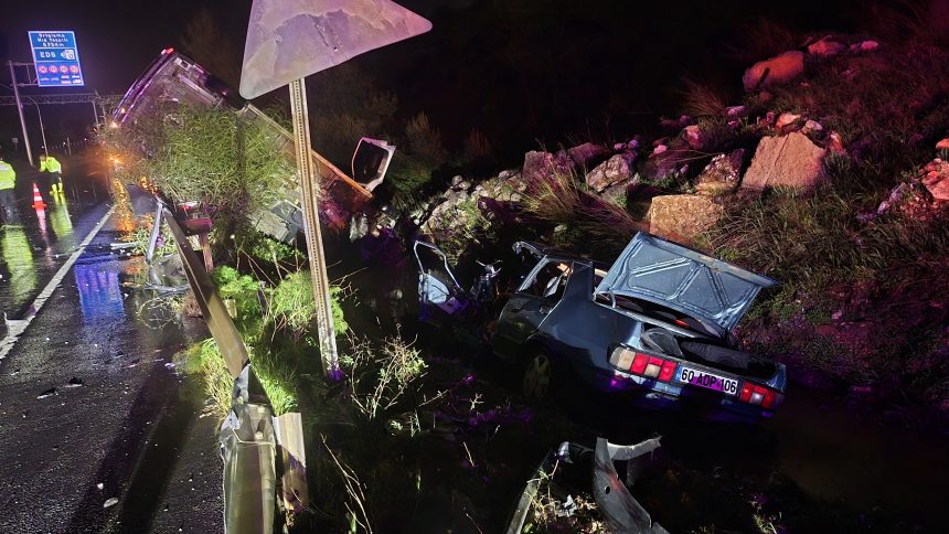 Muğla’nın Bodrum ilçesinde bulunan Kaynar kavşağında, gece saatlerinden Bodrum’dan Milas istikametine giden bir otomobil, kavşakta biriken suya girip kontrolden çıktı ve yol kenarındaki çelik bariyerlere çarpıp şarampole girdi.