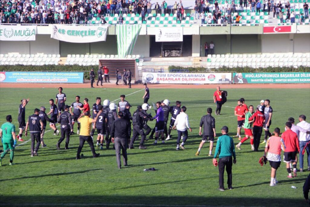 Muğla’nın Menteşe ilçesinde Muğla Atatürk Stadı’nda oynanan Bölgesel Amatör Lig (BAL) Play-Out maçında Muğlaspor ile Ortaca Belediyespor taraftarları ve oyuncuları arasında kavga çıktı.