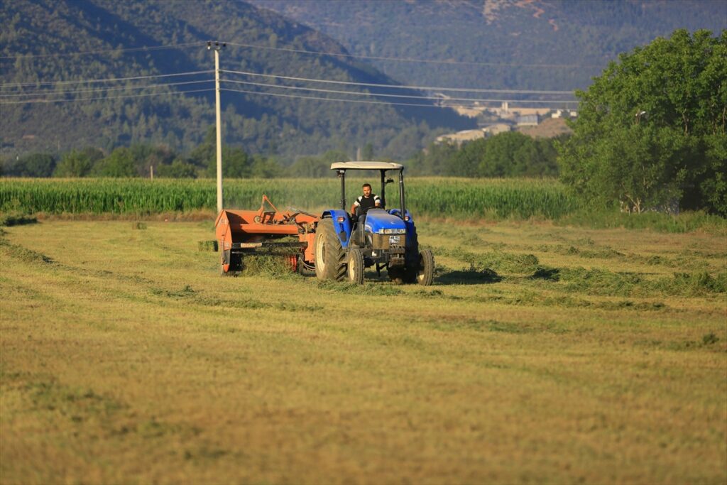 Muğla Büyükşehir Belediyesi arazisine ekilen ve hasadı devam eden yonca, üreticiye hayvan yemi desteği olarak dağıtılacak.