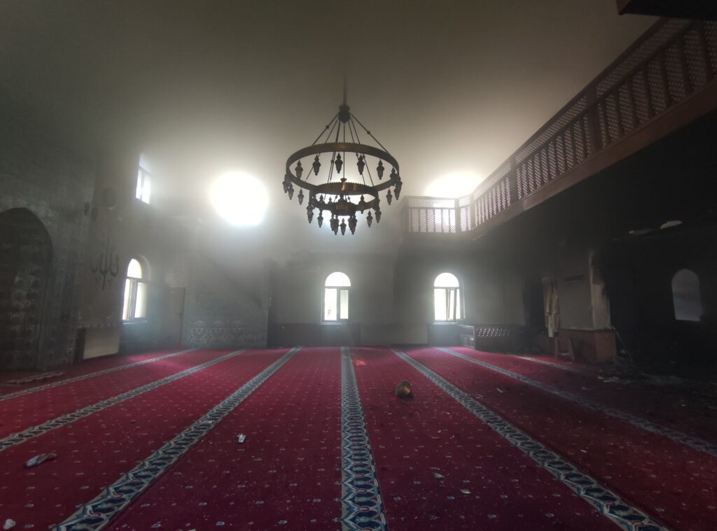 Muğla’nın Menteşe ilçesinde Emirbeyazıt Mahallesi’ndeki Osman Gazi Dereli Camisi’nde imamın odasında başlayan yangın kısa sürede caminin geri kalanına yayıldı.