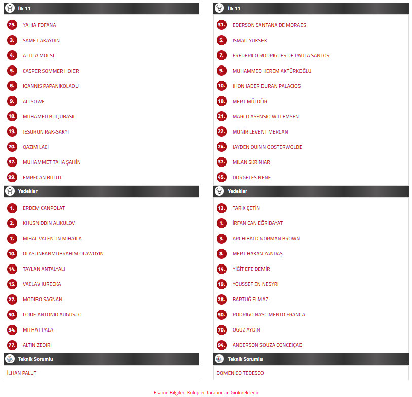 Fenerbahçe’de İsmail Yüksek, sarı kart cezası nedeniyle bu maçta forma giyemeyecek. Kadro dışı bırakılan İrfan Can Kahveci ve Cenk Tosun da karşılaşmada yer almayacak.