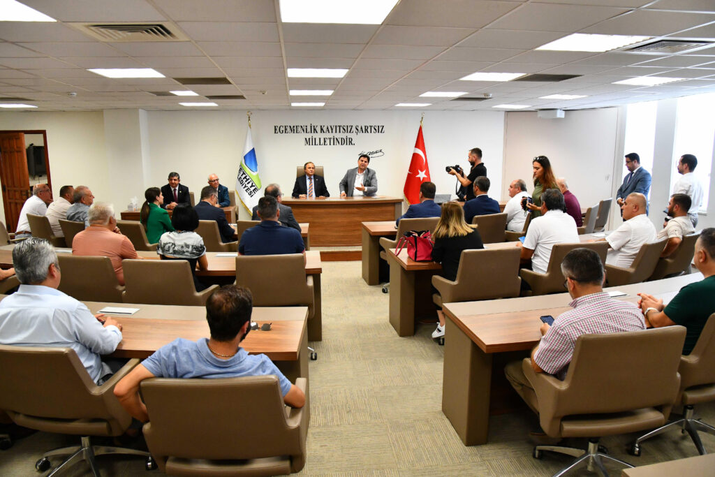 Fethiye Belediye Başkanı Alim Karaca, CHP Genel Başkan Yardımcısı Seyit Torun’u belediye önünde karşılarken, belediye birim amirlerini ve personelleri tek tek selamlayan Torun ve beraberindeki heyet, belediye meclis salonuna geçti.