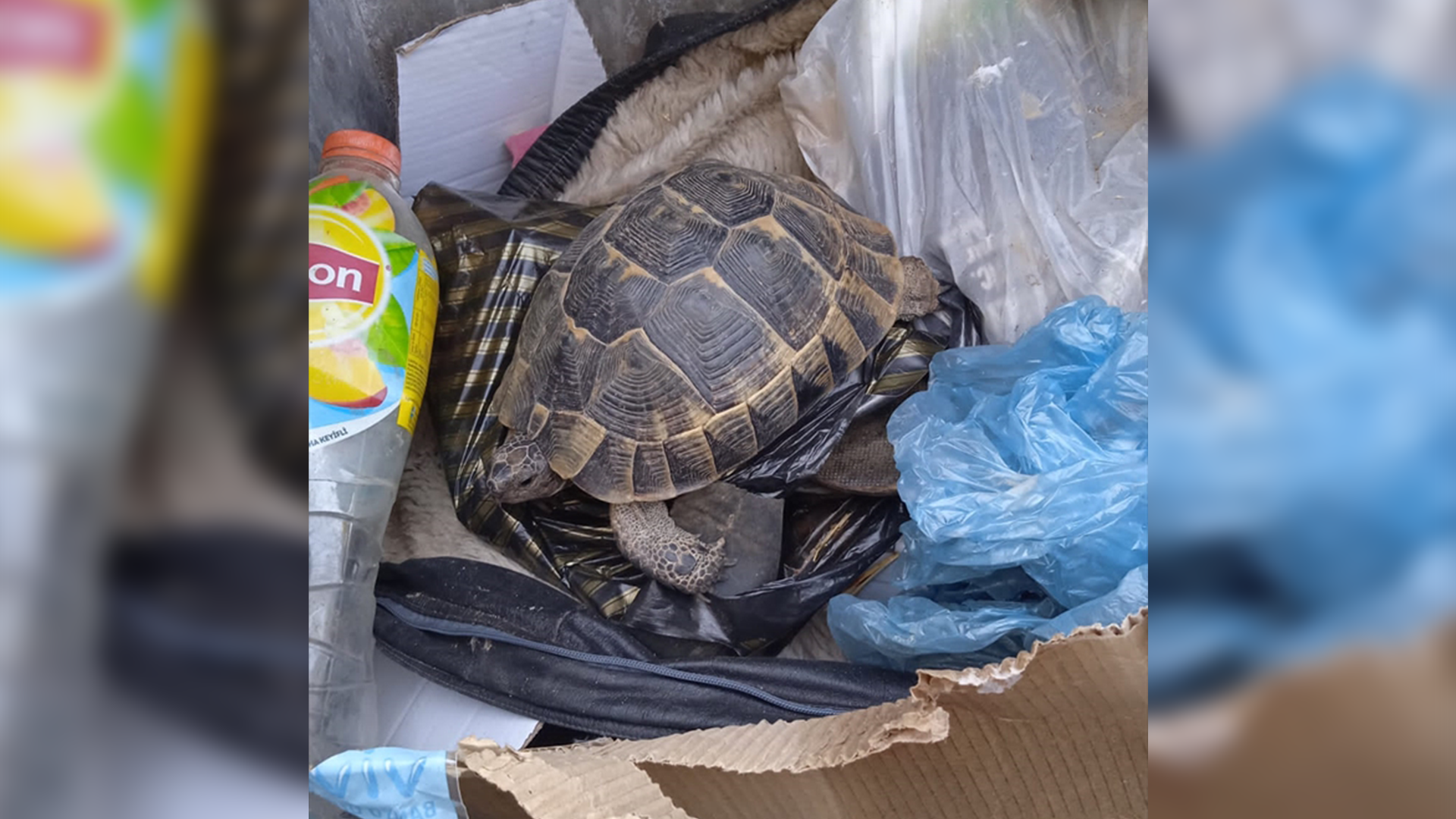 Kaplumbağanın canlı olduğunu tespit eden ekipler, kaplumbağayı çöpten alarak doğaya bıraktı.